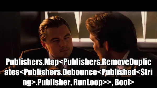 You might wonder what’s this fancy business with the debounce and removeDuplicate operators? Well, these are part of what makes Combine such a useful tool for connecting UIs to the underlying business logic. In all user interfaces, we have to deal with the fact that the user might type faster than we can fetch the information they’re requesting. For example, when typing their username, it is not necessary to check whether the username is valid or available for every single letter the user types. It is sufficient to perform this check only once they stop typing (or pause for a moment).